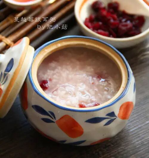 原料:大米一杯约50-80g、银耳两朵、冰糖一块、蔓越莓50g