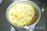 好在慕斯液中加入切成小丁的芒果颗粒。