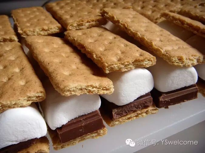 果塔饼干( S'more)在美国非常流行。其饼干用的是英国的Graham crackers,如果是单纯的饼干的话,美国是没什么人吃的。美国小孩野炊时经常会在中间夹一块软糖块,穿在棍子上烤着玩,但基本也是不吃的。后来有了一种新吃法就是在中间夹一块肉桂块,和在一起,美国人就喜欢吃了。