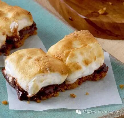 3. 在微波炉或者烤箱中烤一下,至棉花糖上色,巧克力融化