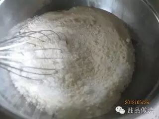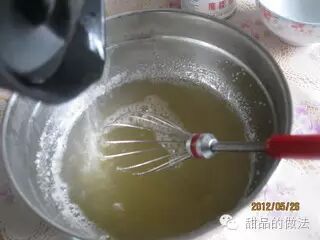 保鲜膜贴在模具里,如果表面光滑的就不用。然后把混合好的浆倒进模具里,平放