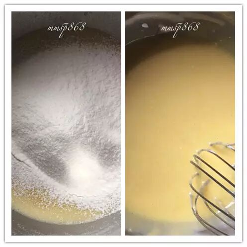 刚开始搅拌的时候会出现大气泡,然后会变小,最后蛋黄糊变得细腻粘稠,粘稠度达不到面糊那样的
