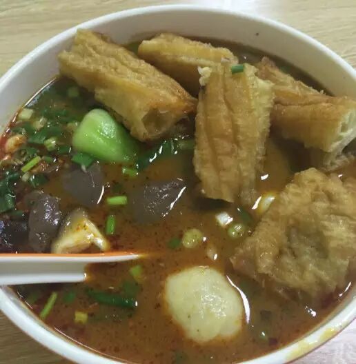如果你喜欢吃沙茶面又喜欢麻辣烫的风味的话,这家店可以将你的喜好结合在一起。它的汤头二者风味皆有。