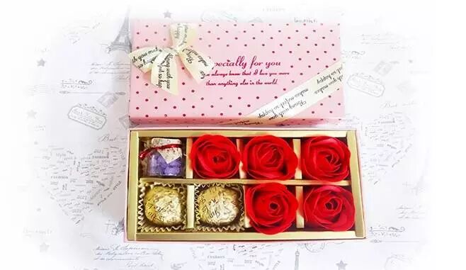 包含5朵玫瑰、2颗巧克力、1瓶许愿瓶