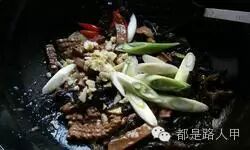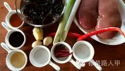 8.清锅后原油下锅(取净的,渣子不用),油7成热时下姜片、红尖椒段、木耳,加盐翻炒均匀;下滑过的腰花,快速下白糖,烹入米醋、料酒、生抽,快速翻炒均匀。