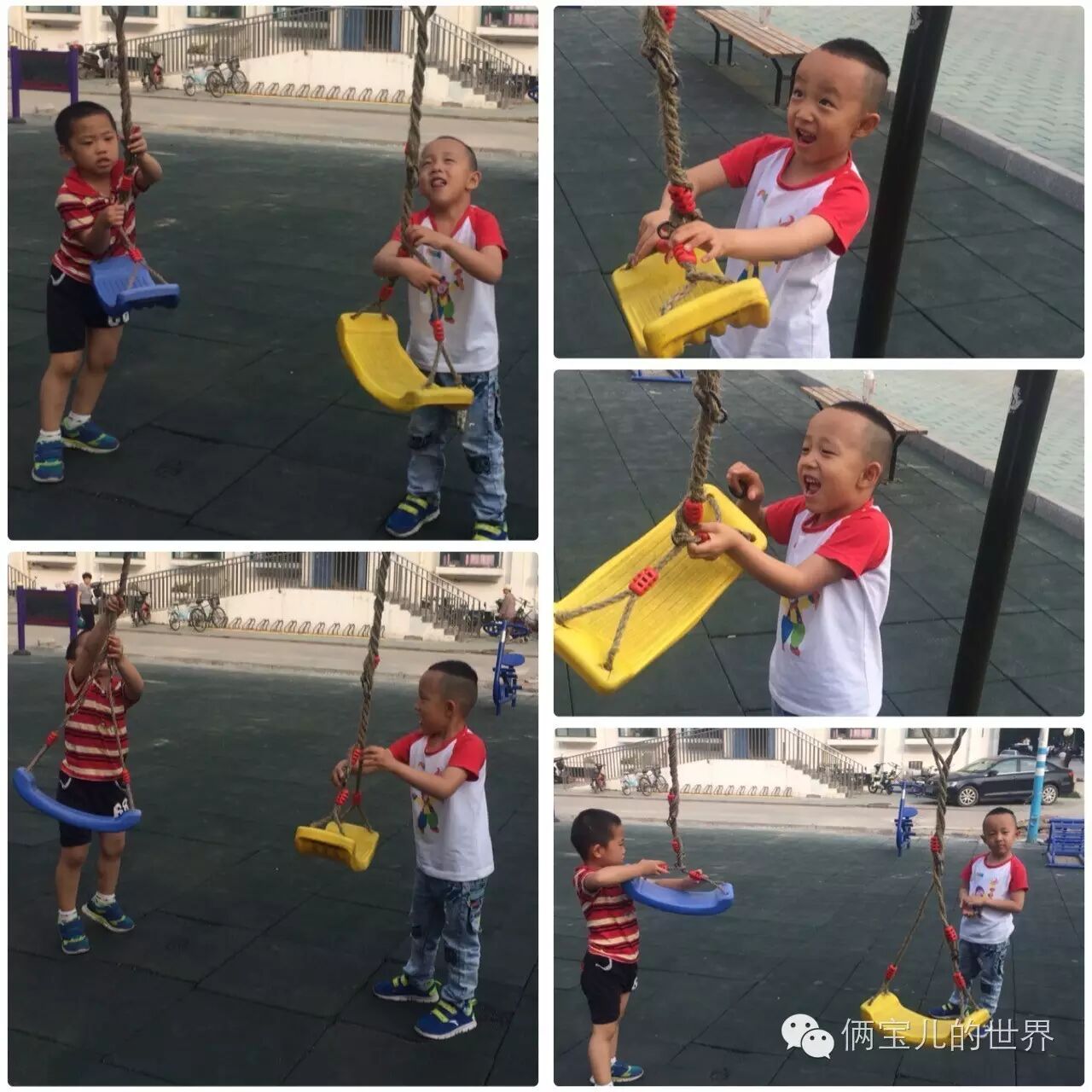 2. 木子喜欢转秋千,有时趴在上面一起转,有时看着秋千飞速反转也会很投入。