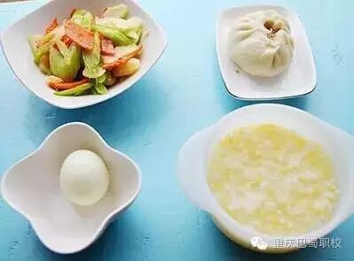 5、猪肉白菜豆腐粉条包+玉米小米粥+胡萝卜西芹炒马蹄+白煮蛋