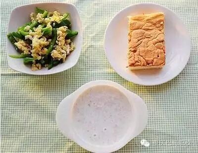 1、海绵蛋糕+青椒炒蛋+牛奶麦片