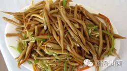 切板板:用高粱面或白面,将面团压成约7厘米宽,0.1厘米厚的条状,用刀切成薄条,边切边放入沸水中。