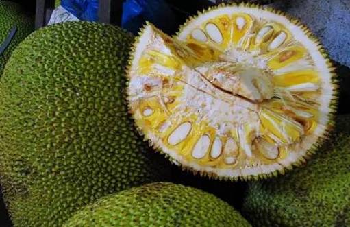 榴莲简直就是防狼利器好吗,味道也可以吓跑一群人,菠萝蜜则香甜可口,外皮比较像鳄鱼皮。