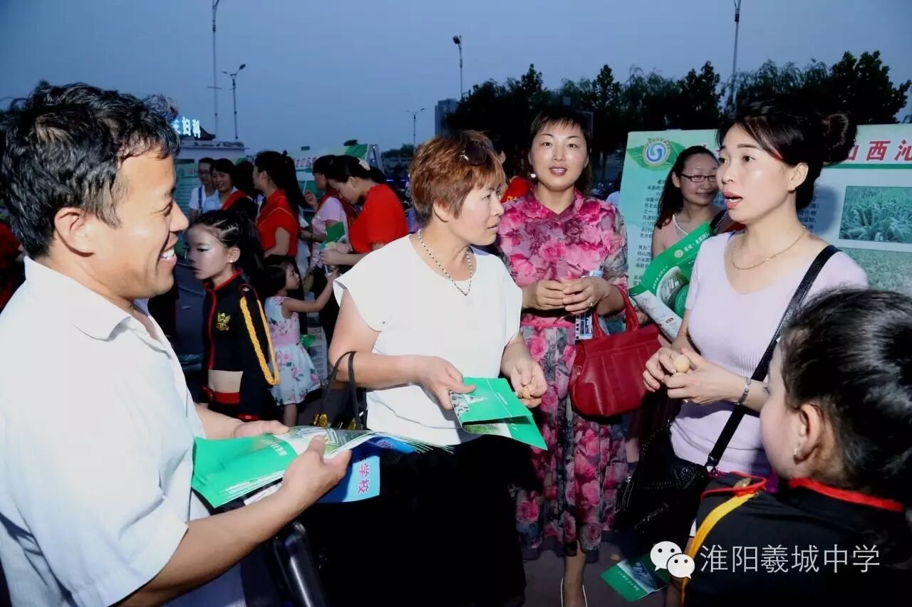 6月22日晚淮阳天天艺术学校在工人文化宫举行“建党九十五周年”暨“两城一区”创建文艺汇演;淮阳羲城中学董校长应邀参加,并为现场演出的学生及家长朋友送去了采摘自学校生态农场的新鲜水果。部分学校教师志愿者在现场宣传健康饮食科普知识。学校的热心服务受到广大学生和家长的赞赏。