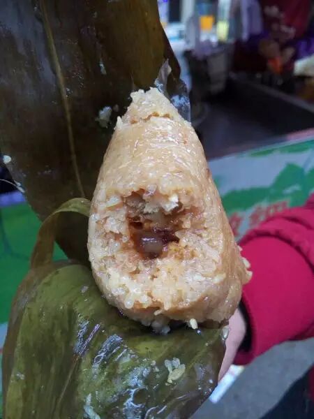 很多地方只有在端午节的时候才吃得到粽子,可在上饶,并不是哟。粽子在上饶小吃街算是一特色。口味也很多,有肉粽,板栗粽,菜棕,红枣棕哟~小编果断的来了一个硕大的板栗肉粽~