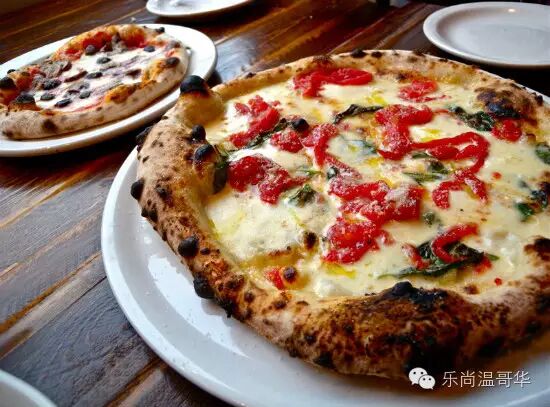 推荐Neapolitan pizza,最正宗木烤,获奖无数,吃过之后,对pizza会有惊喜新发现。还有它家的chili and rosemary oils 也是一绝。相比那些面皮厚得可以饱肚,pizza料可以多得七、八样,北美流行的、所谓的“意大利pizza”,正宗那不勒斯pizza是以小而精来取胜的,以 Nicli Antica Pizzeria 的 Margherita Pizze 为例,上桌时但闻香气纷呈,有麦香、芝士香及香草之香,切开,卷好,送入嘴边,但觉柔而带 Q 劲的饼皮、半溶芝士成为纠缠依恋两生花,些微的番茄酸度刚可醒胃,厨房中现摘紫苏香草居然是香气中的灵魂。