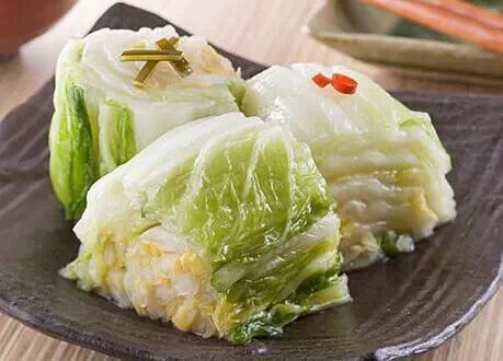 1、乌子(小乌贼)煨肉 食材: 材料:乌子,白菜,肥肉,粉条,葱姜。 三个中号乌子,估计一斤。 白菜很重要喔,天不冷的话,口感好的白菜不好找。 乌黄乌蛋一定留着,把乌子墨扔掉。 将乌子、白菜、肉、黄酒、老抽三大匙,生抽两大匙,一次放入砂煲,加两碗水没过食材,大火烧开后转中小火炖一小时可以试味调整,需要就加入另一匙生抽。再小火焖20多分钟。 喝一口汤,慢慢的咽下,慢慢的品,有乌子的鲜味,白菜的鲜味,乌黄和肥肉的香味。 还想再啰嗦一句,乌子煨肉一定一定要配着米饭吃,那美味,口水直流下来! 2、干锅辣白菜 食材: 大白菜400g、五花肉100g、葱花适量、红辣椒20g、青辣椒30g、老抽20ml、蚝油15g、白糖2g、盐适量、黄酒10ml、鸡精少许。 做法: 1)准备好所有的食材。 2)五花肉洗净切薄片,青红椒切圈,葱切碎。 3)炒锅倒油爆香葱花和红辣椒。 4)倒入五花肉翻炒。 5)炒至五花肉吐油微黄。 6)再放入青辣椒炒香。 7)淋入黄酒炒香。 8)再加入老抽。 9)加入蚝油。 10)炒至五花肉上色。 11)放入切片的大白菜翻炒。 12)加少许盐。 13)在加入白糖继续翻炒。 14)白菜变软淋入少许鸡精翻炒均匀关火。 15)把白菜盛入干锅,随酒精炉一起边加热边吃。 3、白菜肉卷 食材: 大白菜叶400g、猪肉200g、料酒适量、食盐适量、味精适量、生抽适量、老抽适量、葱适量、胡椒粉适量、蒸鱼豉油适量、香油适量姜适量。 做法: 1)食材:白菜叶、肉馅。 2)肉馅中加入葱姜末、料酒、食盐、味精、胡椒粉、生抽、少许老抽、香油拌匀。 3)搅打好的肉馅。 4)白菜叶放入沸水锅中焯烫一下捞出。 5)用刀把白菜帮子厚的地方片下去。 6)在片好的白菜叶一边放上肉馅。 7)从一头卷起,卷成白菜肉卷。 8)卷好的菜卷。 9)所有都卷好,放入蒸锅。 10)上汽后,大火蒸8分钟即关火。 11)蒸好的菜卷根据自己口味加一些蒸鱼豉油。 12)蒸好的菜卷,鲜美又营养,上菜啦。 4、金边白菜 食材: 白菜、干红辣椒、酱油、盐、醋、姜末、湿淀粉、芝麻油、菜油、白糖。 做法: 1)大白菜洗净沥水,用刀拍一下,切成条。干红辣椒撕成碎末。 2)炒锅加菜油,烧成7成热,下撕碎的干辣椒,炒至略微发焦,放入姜末和白菜,油稍微大一点把白菜煎一下,很香。 3)旺火快炒,加醋,酱油,盐,白糖煸炒至白菜呈金黄色时,用湿淀粉勾芡,淋芝麻油,颠翻均匀即可出锅。 5、凉拌咸白菜 食材: 咸白菜400g、剁椒20g、麻油2g、绵白糖3g、青辣椒5g、鸡精1g 做法: 1)准备食材; 2)把咸白菜用水冲洗,挤掉水分,去掉叶子部分; 3)切小丁,青辣椒洗净切末; 4)加入白糖,拌均匀; 5)加麻油鸡精拌均匀; 6)加剁椒拌均匀; 7)装盘撒上青辣椒末装饰即可。 6、白菜漬物 食材: 白菜1/2个、酒母15g、粗盐15g、薄口酱油30g、味醂30g、干辣椒3根、昆布2片、砂糖15g。 做法: