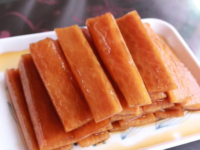 将萝卜洗净,最好是红萝卜,皮当然是不能削的,每天让你好看!切成薄薄的片状,加入饴糖,也叫麦芽糖,大概两三勺即可,静置12小时后,就会发现已经产生了萝卜糖水,此水有化痰止渴之效。