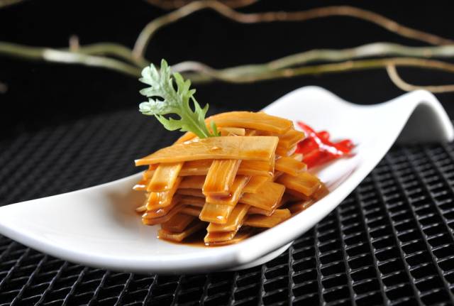2、放入花生碎、盐、味精、调料油拌匀后装盘即成。