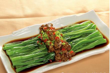 原料:菜芯适量,白蒜头适量