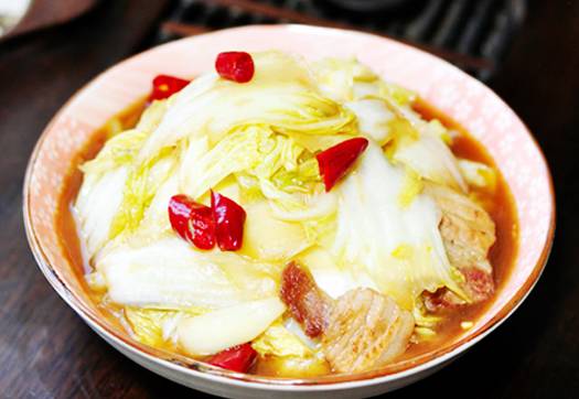 2、起炒锅,用武火把油烧热,用葱、姜末烹锅,加白菜炒,加酱油快速一炒,加醋,勾芡,再加味素,颠翻几下,淋上香油即成。