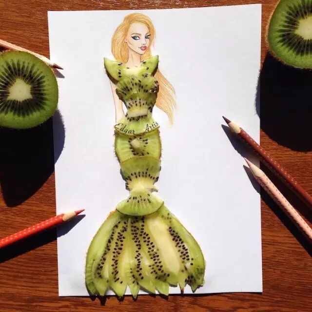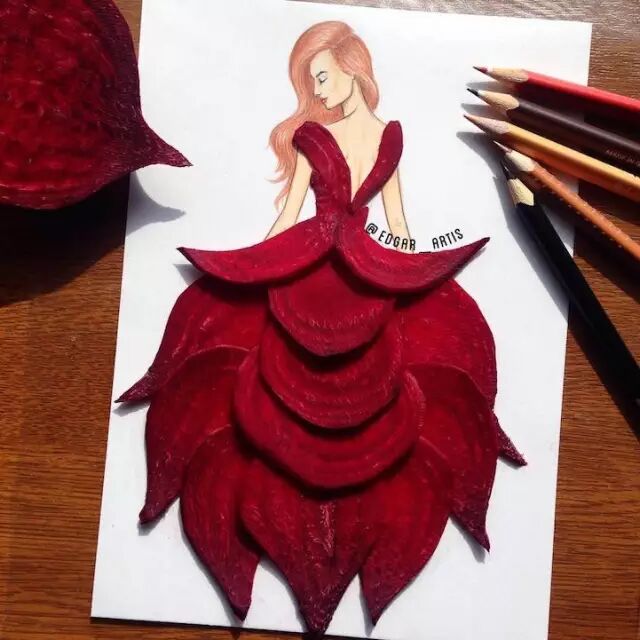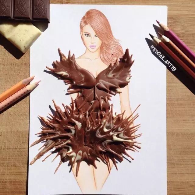 意大利面只是用来吃的?艺术家Say NO! 插画师 Edgar Artis 将插画和现实的各种物体结合,绘制出个各种各样的时装插画。像意大利面、奶油、巧克力甚至是花瓣火柴什么的,都变成了模特美美的裙子了······