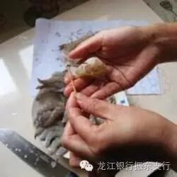 1.冻虾划开,去头去壳。用刀将虾背划开,用牙签把虾肠挑出来。