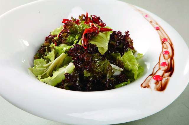 2、锅内放少许油,加入生菜、白腐乳、红椒丝及调味略炒即成。