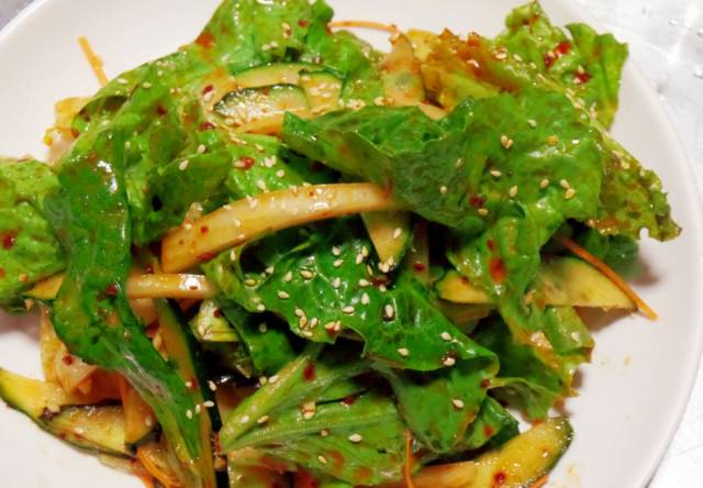 生菜、蒜、酱油、陈醋、鸡精、食用盐、香麻油。