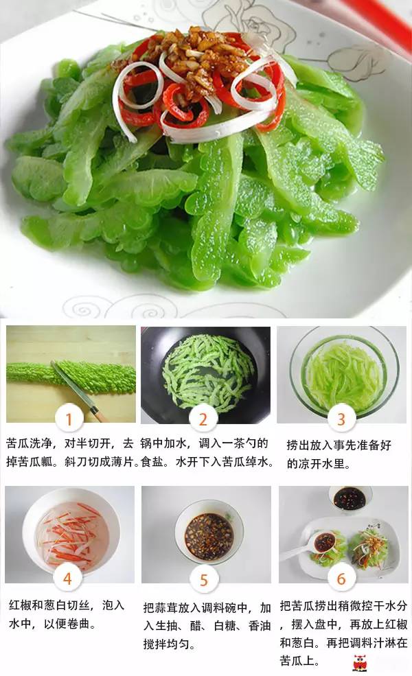 苦瓜在冷开水里浸泡过的,既保持了脆也保持了绿。