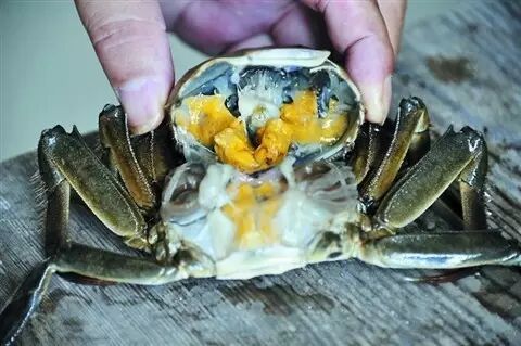 六月黄也叫“童子蟹”,每到农历六月上市,是刚刚经过第三次脱壳的螃蟹,体重一般不足2两甚至更小些,可以说是螃蟹从“童年”向“青年”发育的转折时刻。此时的螃蟹蟹壳比较薄,蟹黄却十分饱满,一旦螃蟹蜕掉这层壳,就会进入性成熟期,届时,蟹黄自然就会减少。“六月黄”其实就是因此而得名,在上海地区,六月黄因其鲜美的口味,极受追捧。