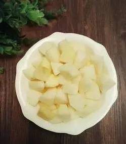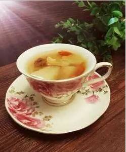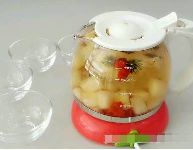 做法:梨去皮切块与绿茶同 泡即成梨茶。