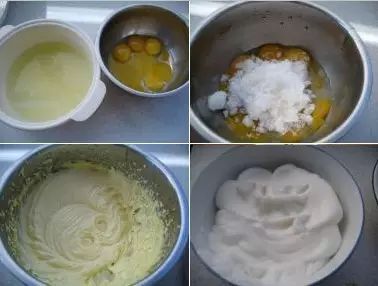 1、蛋黄、蛋清分开,放入两个容器中。
