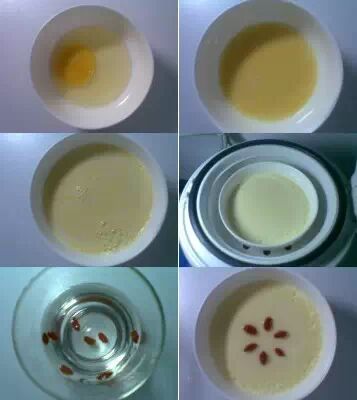 6、枸杞捞出,摆在蒸好的牛奶蛋羹上