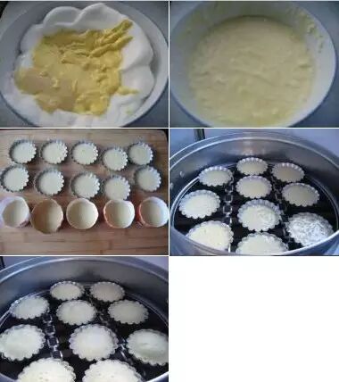 7、将鸡蛋糊倒入模具中。