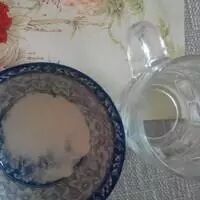 2 用一小碗凉白开水把石花粉调匀,到入煮开的冰糖水里,不停搅拌直到水开。