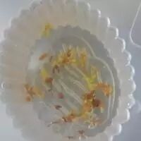 3 把配料放入模子,量大概1/5,桂花和茉莉一点点,多了会苦。蜜豆,蓝莓2-4颗.分别放入不同的格子。