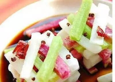 材料:青萝卜,白萝卜,心里美萝卜,食盐,花椒,干辣椒,醋,糖