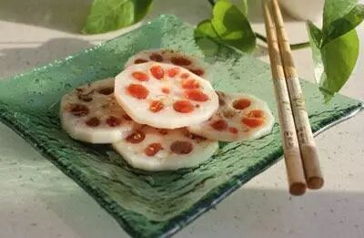 材料:藕,山楂糕,糖,醋,盐