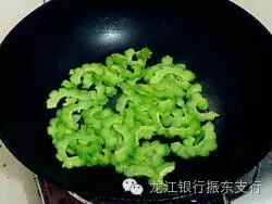 4.热锅下油,炒苦瓜。
