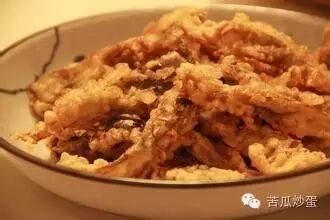 锅下适量油,待油热后放入调好糊的鲜蘑菇,炸熟,撒上椒盐。