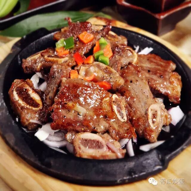 把牛仔骨去骨,放黄油、耗油、鲜酱油和黑胡椒汁,再放黑胡椒碎、鸡精和干淀粉拌匀,最后加清水用手揉匀。
