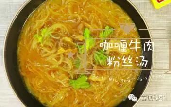 捞起牛肉,放在清汤里,加咖喱粉烧五分钟。