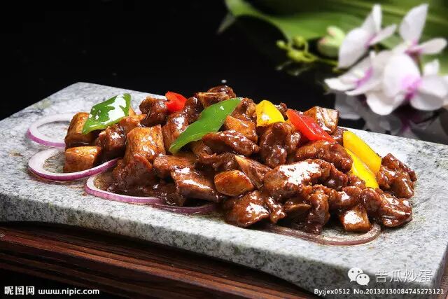 放置十五分钟,放油旺火煸炒。炒到肉变色,放香葱、冬笋,彩椒段,再旺火煸炒熟就可以出锅。