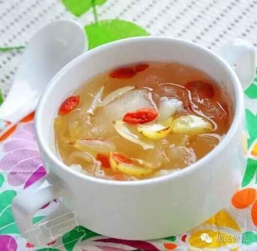 银耳软烂加入粒和百合继续煮上15分钟;