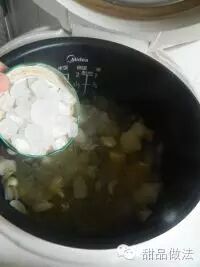 干银耳撕小朵去掉黄根,放入电饭锅加入清水。