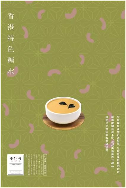 香港特色糖水小甜谷中式养生甜品系列,以【天然、健康、美味】的原则,精选上品优质的食材为原料,每天手工古法烹调,以保存食品的最大营养价值,健康少甜,吃进天然,无负担的享受原味的感动。