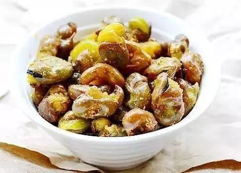 6.锅中无油把蚕豆炒至皱皮。