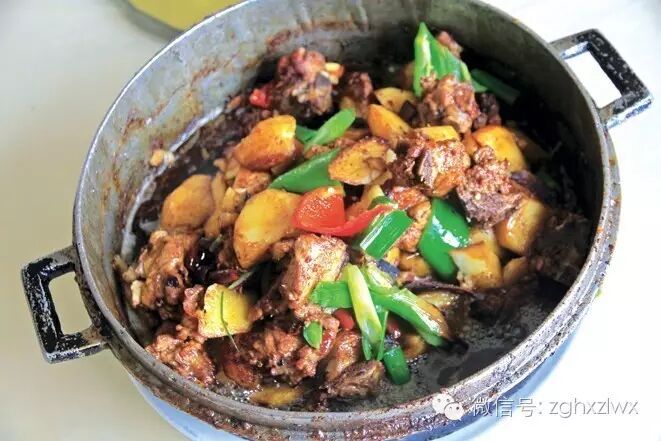 土鸡炖洋芋:此菜采用散养的土鸡,土豆块加上土鸡块,出锅时再加入一些青椒块,土豆中有浓浓的鸡肉香味,鸡肉中也有淡淡的土豆香,口感和滋味都没得挑,这道菜绝对是就米饭的“杀手”。