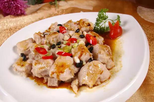 3. 蒸锅内水烧沸后放入腌好的排骨,盖锅盖,大火蒸12分钟。