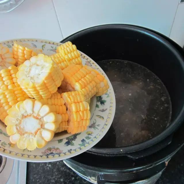 1.排骨洗净,放入开水锅中焯一下,捞出洗净。姜切片,葱切段备用。玉米切块备用。