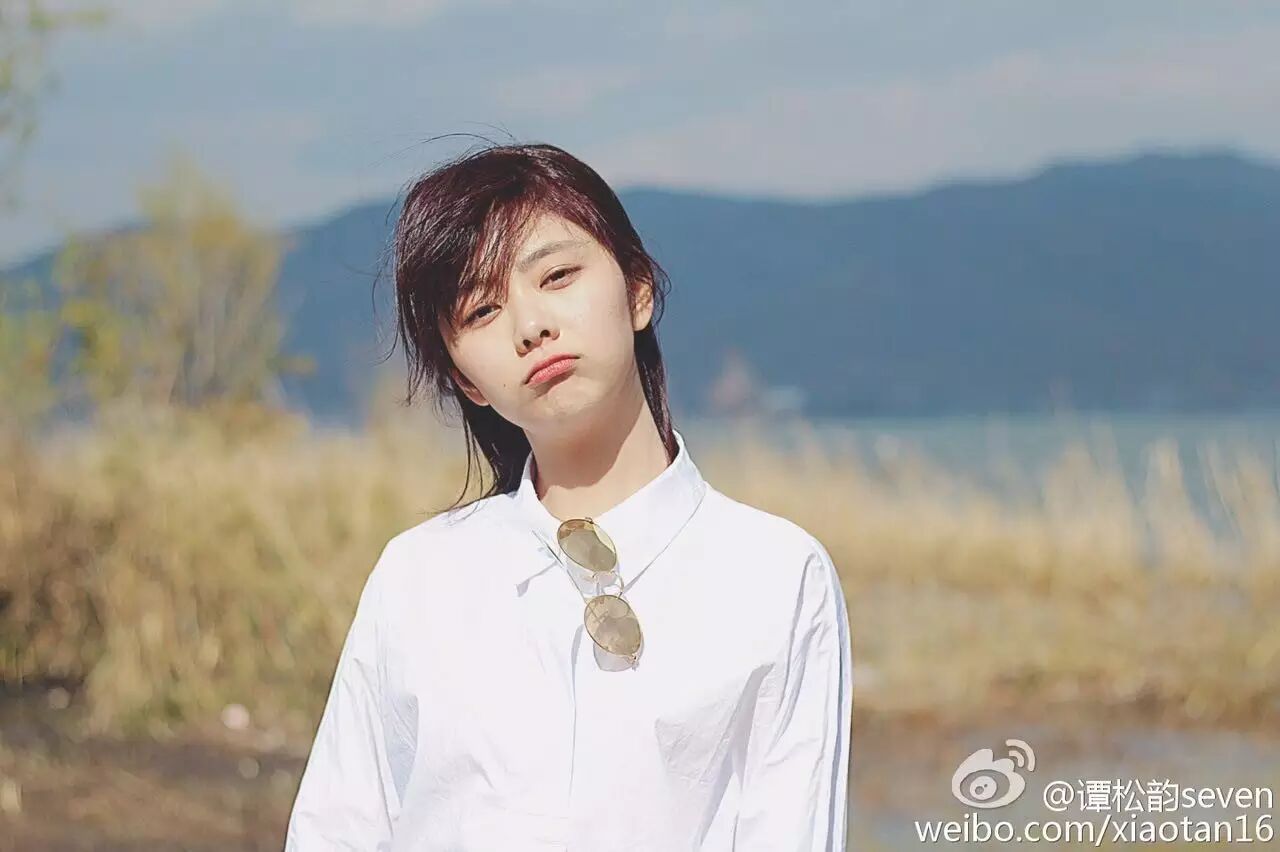 这一切都是谭松韵少女力的来源~再加上齐刘海自带减龄效果,所以看上去完全是高中生既视感。并且由于谭松韵虽然脸肉肉的,可是下巴还比较尖。齐刘海的短发头并不会显得厚重,遮挡了两边还看着脸更小了