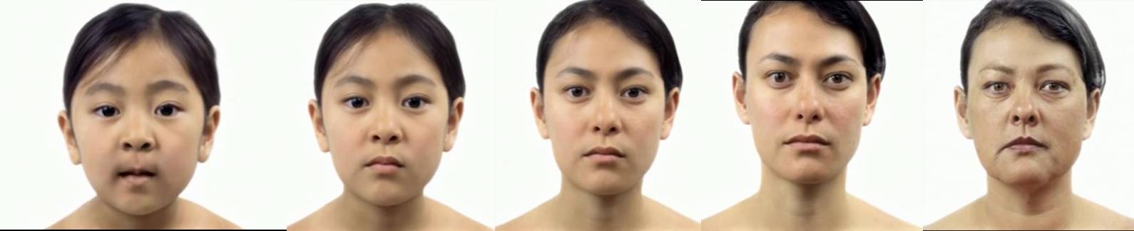 之前提到过,有一个名叫《一分钟年华老去》的视频模拟了人从幼儿到老年脸部的变化过程。可以看到,在这个过程中,脸变得窄长,眼睛由圆变窄,人中变长,鼻子变挺,骨骼变得明显,嘴唇越来越薄。